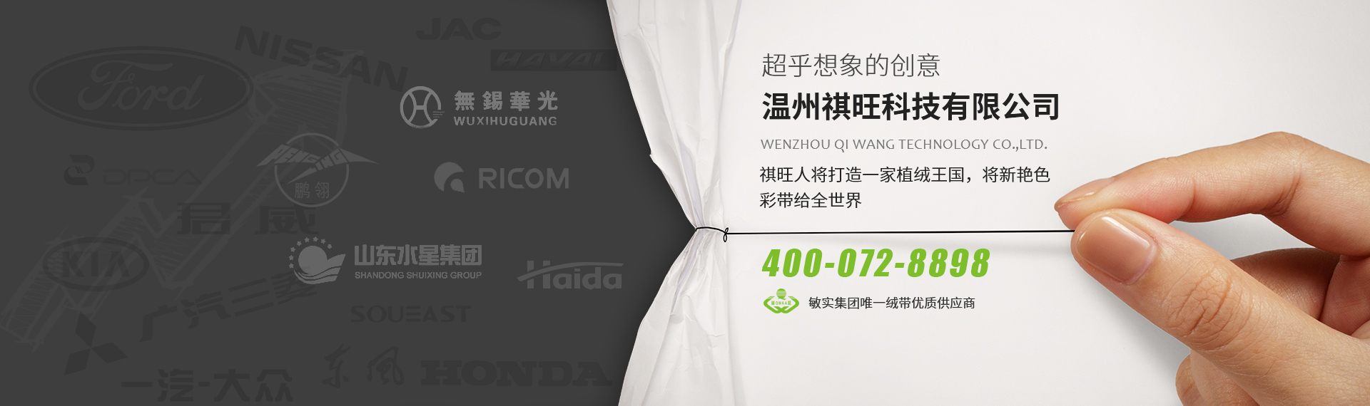 擁有多項(xiàng)專(zhuān)利和技術(shù)認(rèn)證,并得到敏實(shí)集團(tuán)認(rèn)可,敏實(shí)集團(tuán)唯一絨帶優(yōu)質(zhì)供應(yīng)商