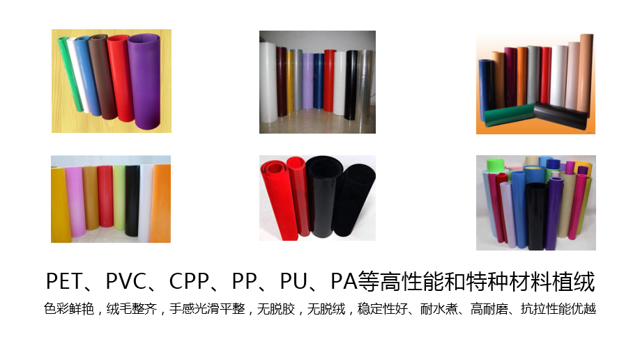 PET、PVC、CPP、PP、PU、PA等高性能和特種材料植絨
